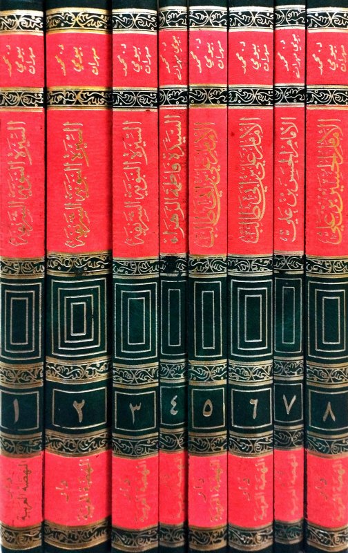 في القضايا والشمائل ودلائل النبوة (مجلد) م4 – السيدة فاطمة الزهراء (مجلد) م5 – الإمام علي بن ابي طالب (مجلد) م6 – ج2 / الإمام علي بن أبي طالب (مجلد) م7 – الإمامنبذة النيل والفرات:ليس أشرف من أن يكتب المرء سيرة سيد المرسلين وخاتم النبيين صلى الله عليه وسلم، وقد تبارك المسلمون في هذا المجال فافردوا الكتب والمجلدات حتى أدركوا عجوزهم عن الإحاطة ببحر أنواره صلى الله عليه وسلم فسيرته ليست كسير البشر إذ تتميز بدقتها وشمولها وعظمتها فهو صلى الله عليه وسلم لا ينطق عن الهوى وهو النبي المعصوم الذي استوعبت شخصيته كل تفاصيل الحياة وملامحها، فهو رحمة للعالمين أرسله الله بنور الحق ليظهره على الناس كافة… فسيرته أكمل السير وأجلها استقى المؤلفون معلوماتهم عنها من كتب الحديث التي تشكل ثروة دينية وعلمية حضى الله بها هذه الأمة.ومن سيرته استنبط الفقهاء والأصوليون الحكام الشرعية والقوانين واستمد كل طالب علم ما يشفي عليله ويشبع رغبته للعلم والأدب والمعرفة ويم يتوفر لبشر ما توفر لرسول الله صلى الله عليه وسلم من تدوين كل أطوار حياته، وفي مناحيها المختلفة منذ أن ولد حتى بعث وأتم رسالته وإلى أن توفاه الله. وأن أحجم الكثيرون عن كتابة سيرة المصطفى فإنما هم تهيبوا ذلك إذ وجدوا أنفسهم أصغر من أن ينهضوا لهذا العمل الكبير,والمؤلف الدكتور محمد بيومي مهران أحد الذين سمت به همته إلى مثل هذا العمل العظيم مستمداً من حبه لرسول الله وتخصصه ما أعانه على إنجاز هذه الموسوعة التي تضم أجزاء سبعة جعلها على النحو التالي:”السيرة النبوية (العهد الملكي)، السيرة النبوية (العهد المدني)، السيرة النبوية في القضايا والشمائل ودلائل النبوة، السيدة فاطمة الزهراء، الإمام علي بن أبي طالب، الإمام الحسن بن علي، الإمام الحسين بن علي”. وقد حرص أن يذكر المصادر والمراجع التي اعتمدها في آخر كل دراسة على حدة، وأثبت أرقام الصفحات التي استسقى فيها في الهوامش تسهيلاً على من يريد متابعة البحث والتوسع به.