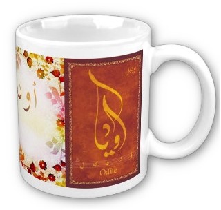 Tasses (mugs) en céramiques avec inscriptions calligraphiques artistiques arabes des prénoms. Oeuvre unique... Idée originale de cadeau !