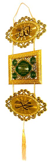 Les éléments du tableau contiennent les inscriptions suivantes : Allah, le verset du trône et Mohammed.