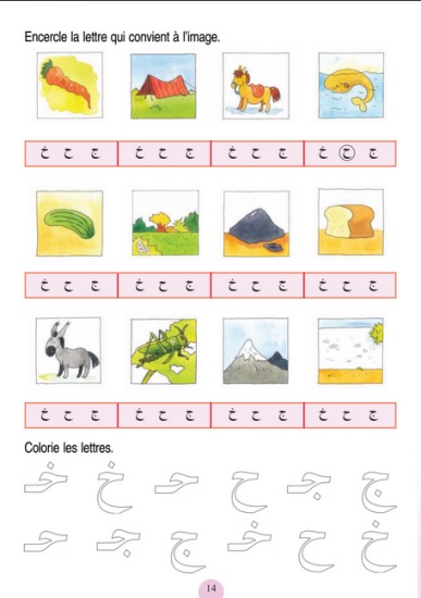 Manuel illustré d'apprentissage de la langue arabe. Chaque chapitre se termine par un test de connaissance.