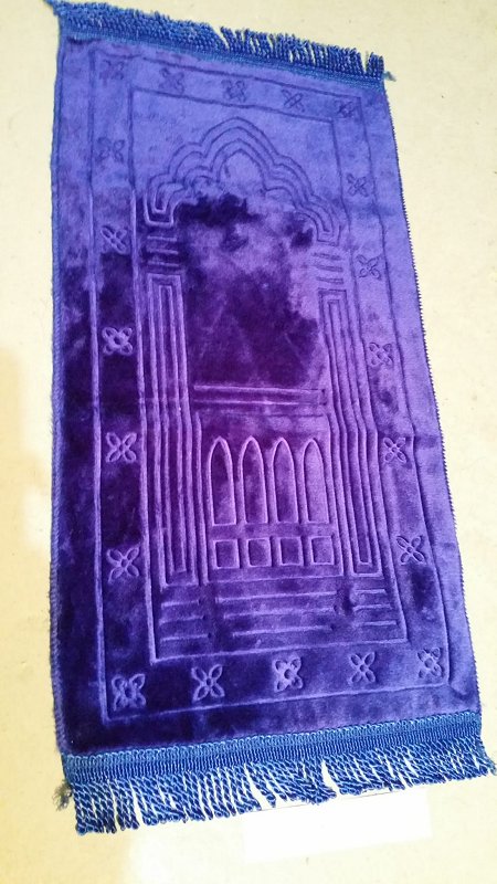 Tapis bébé enfant musulman couleur bleu-violet avec motif Mihrab 4 ogives - REF. 28513 (3.50 €)