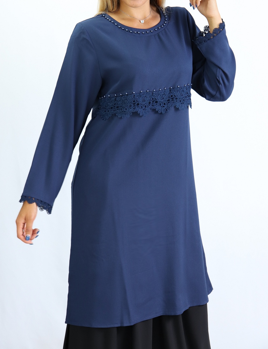 Tunique brodée et perlée - Couleur Bleu Marine Vetement & Accessoire