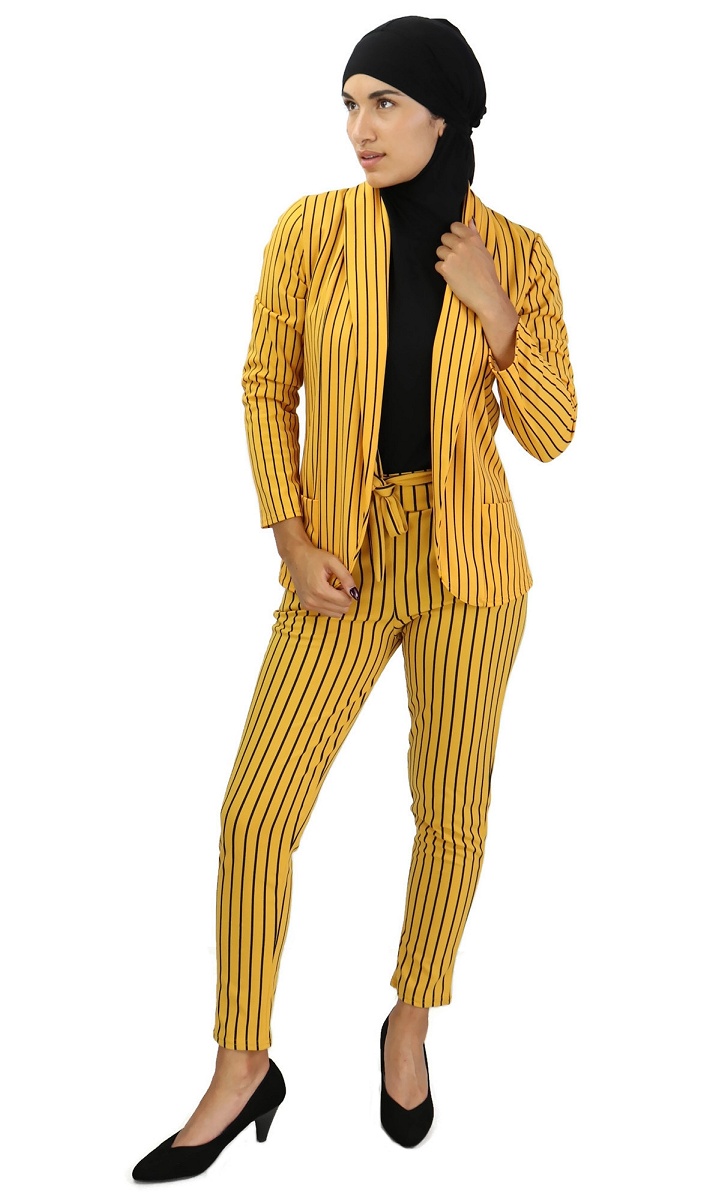 Tailleur couleur jaune moutarde à rayures noires (Ensemble veste et pantalon) Vetement & Accessoire