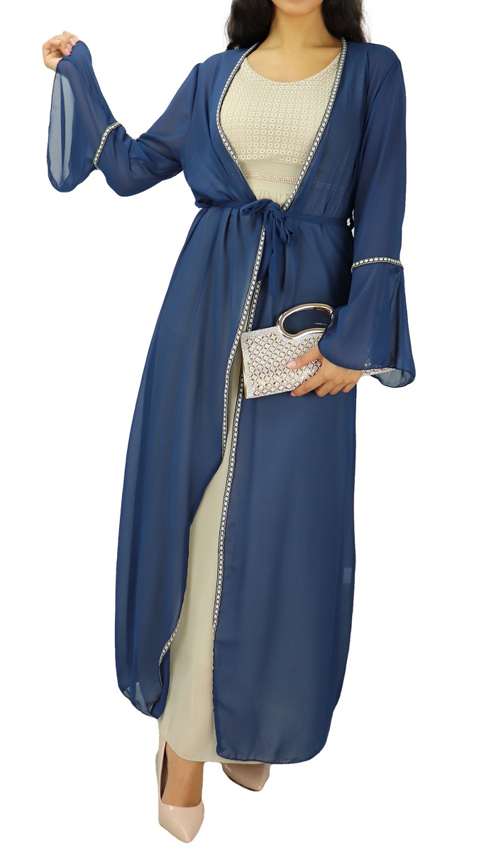 Kimono long avec broderies - Couleur Bleu Marine Vetement & Accessoire