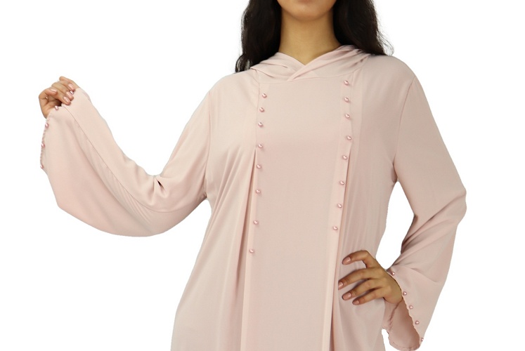 Robe longue, col capuche, entièrement doublée, manches longues, orné des perles sur le devant ainsi que les poignets. Sobre et élégant, Cette tenue s’accommode pour diverses occasions aussi bien festives que quotidiennes.