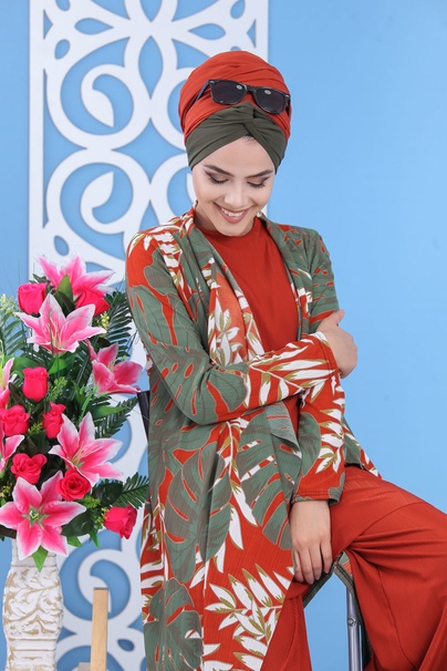 Ensemble 3 pièces : Pantalon + Haut + Cardigan - Couleur Rouille + Vert Vetement & Accessoire
