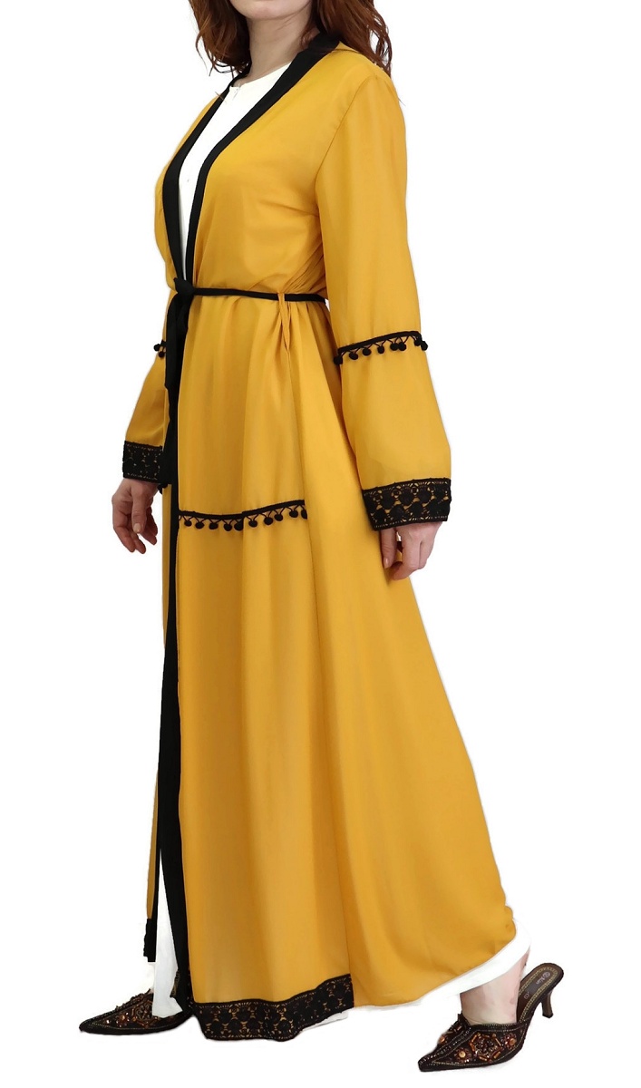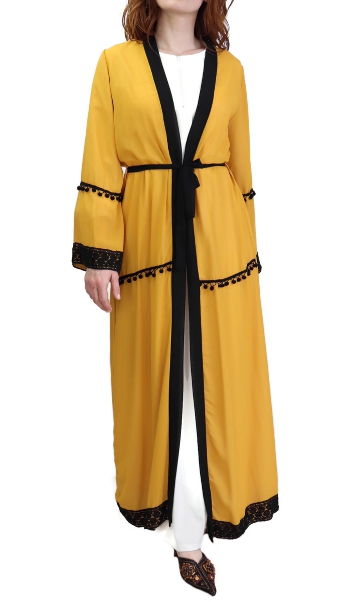 Kimono en mousseline avec ceinture et broderies - Couleur jaune Vetement & Accessoire
