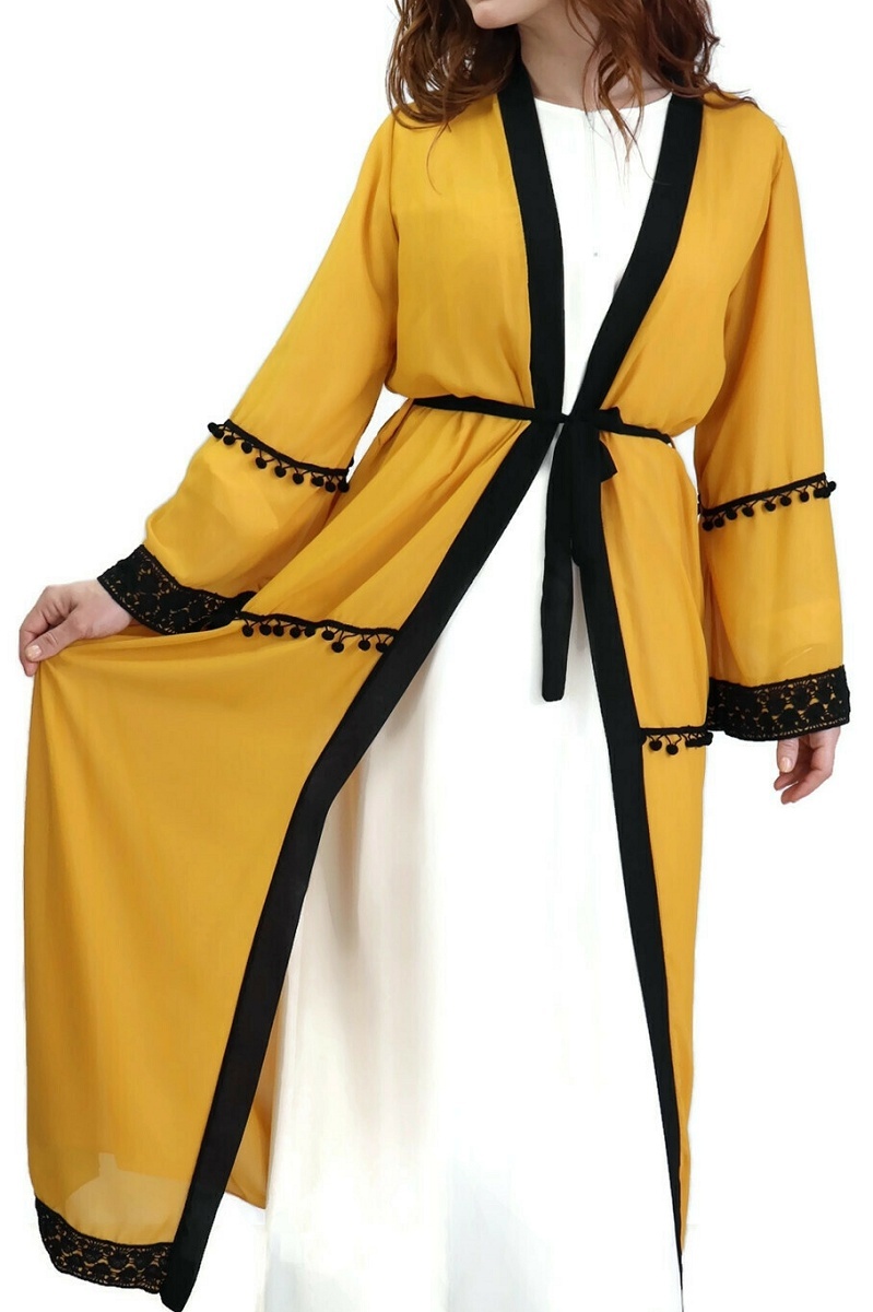 Kimono en mousseline avec ceinture et broderies - Couleur jaune