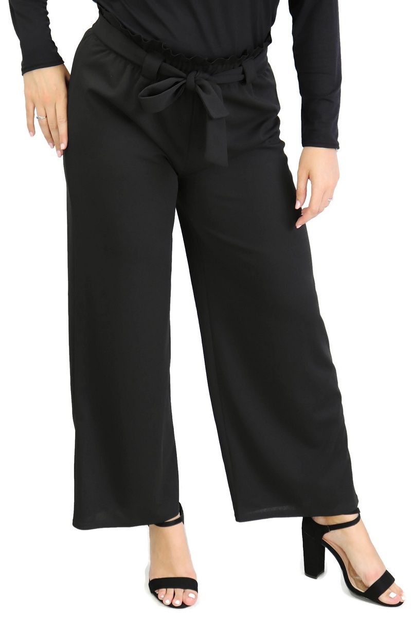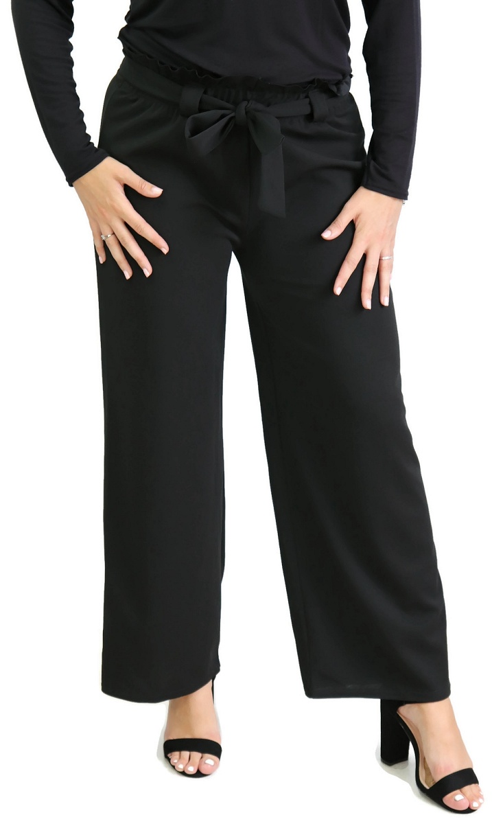 Pantalon élastiqué. Une coupe élargie à la jambe et une taille ceinturée d’un large lien à nouer pour un look tendance et décontracté.
