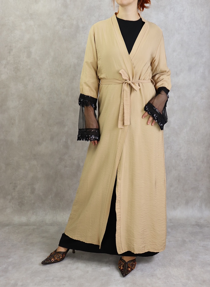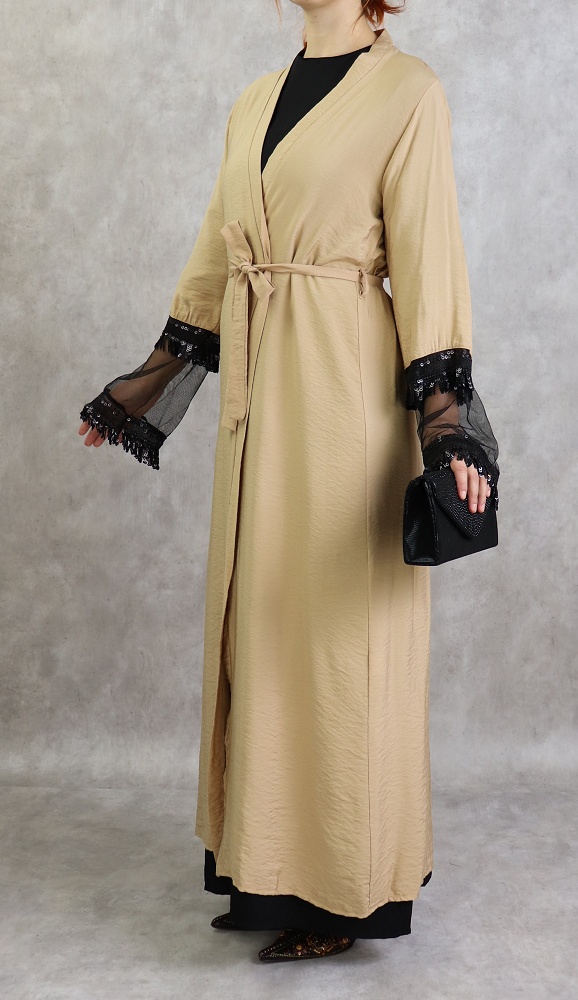 Kimono avec décorations tulle et strass de couleur beige Vetement & Accessoire
