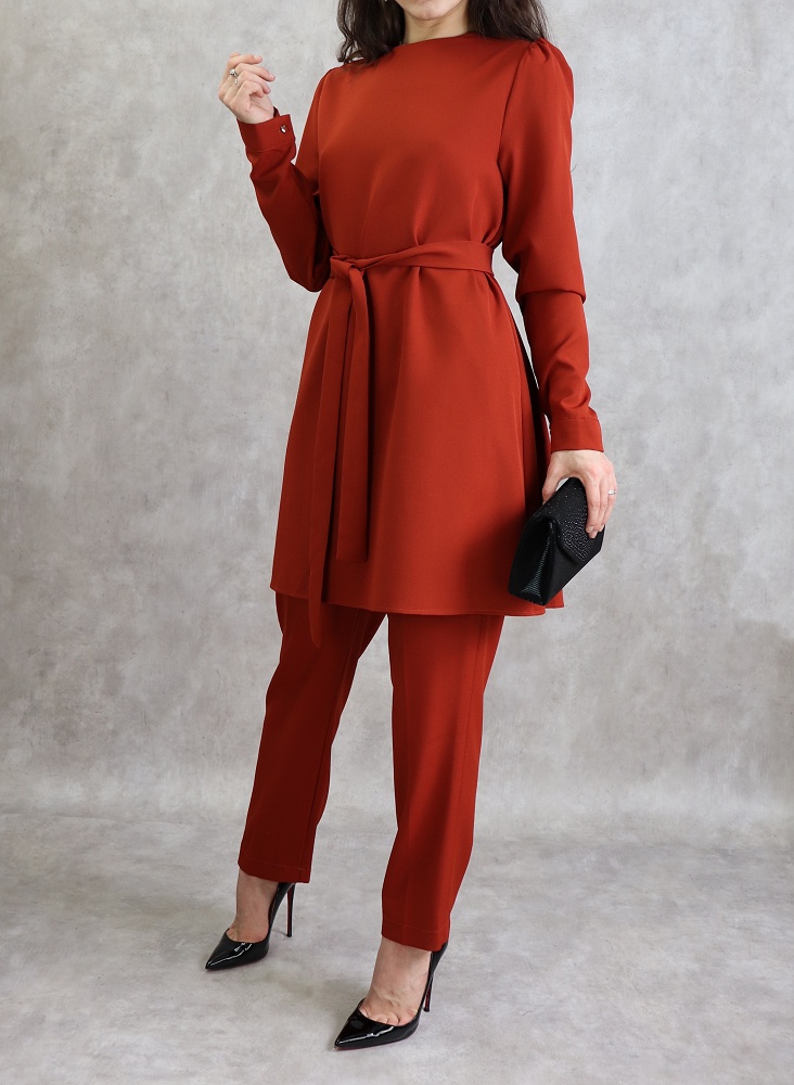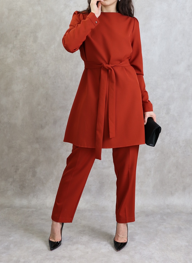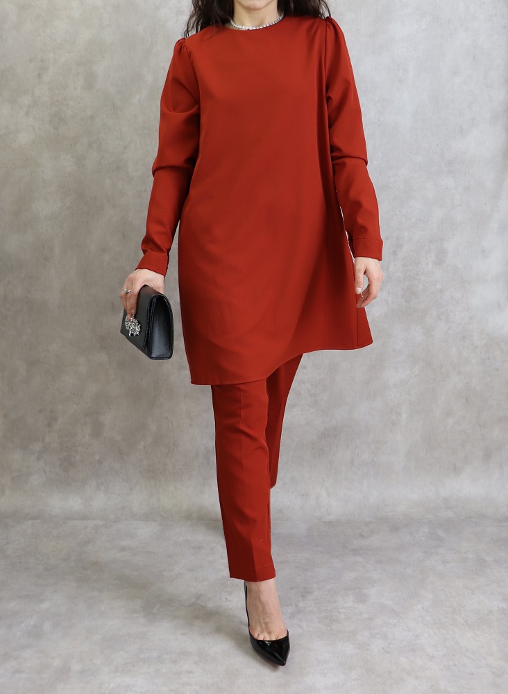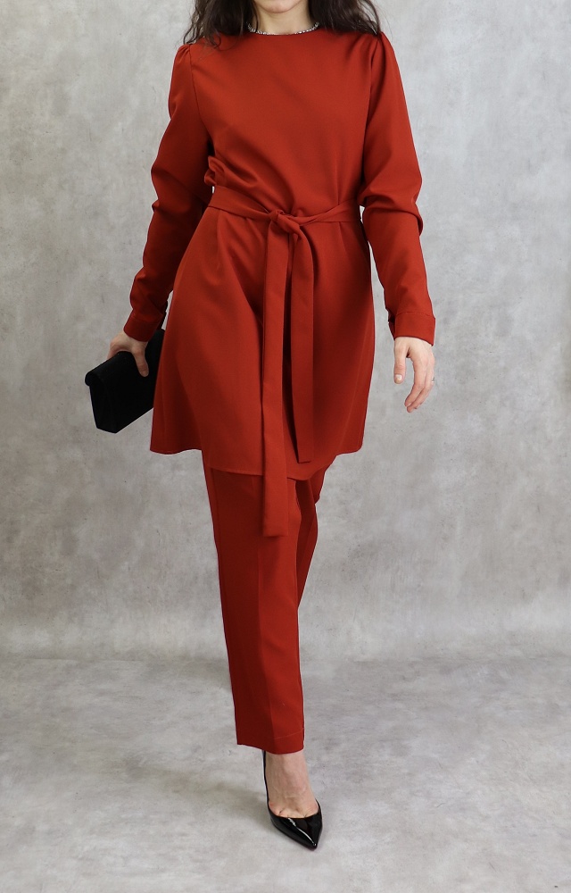 Ensemble chic 2 pieces tunique et pantalon de couleur Brique