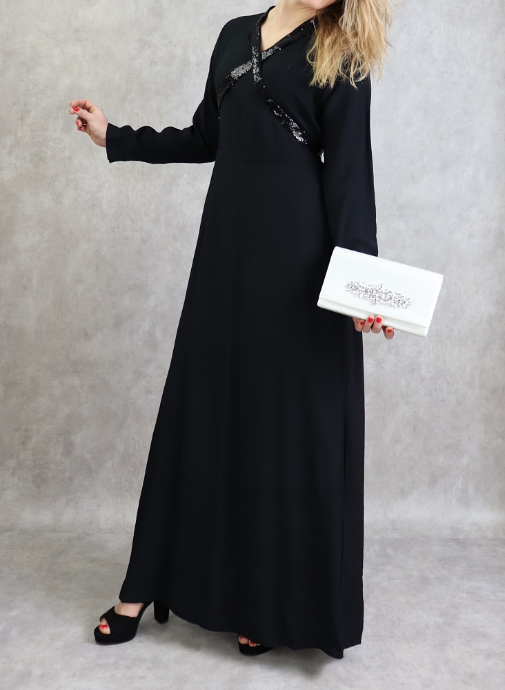 Robe longue croisée à strass de couleur noir Vetement & Accessoire