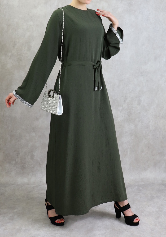Robe longue avec strass de couleur kaki Vetement & Accessoire