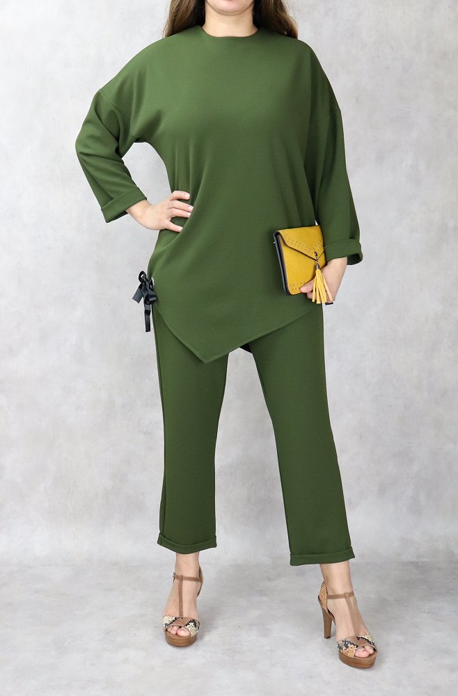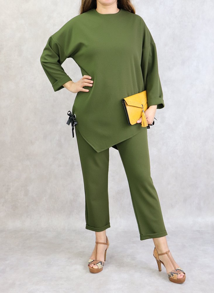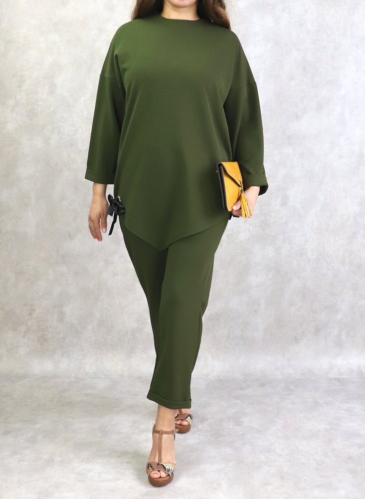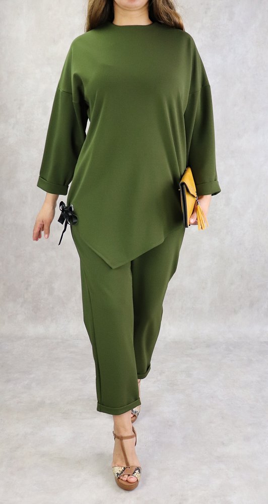 Ensemble femme 2 pièces (tunique et pantalon) avec nœuds sur les côtes - Couleur Vert kaki Vetement & Accessoire
