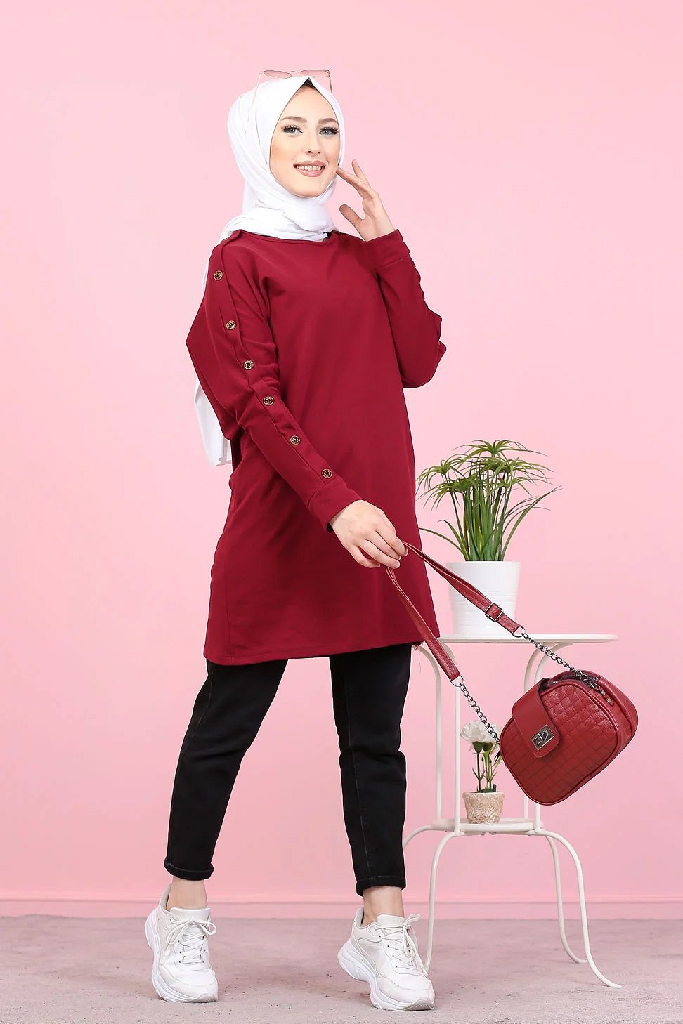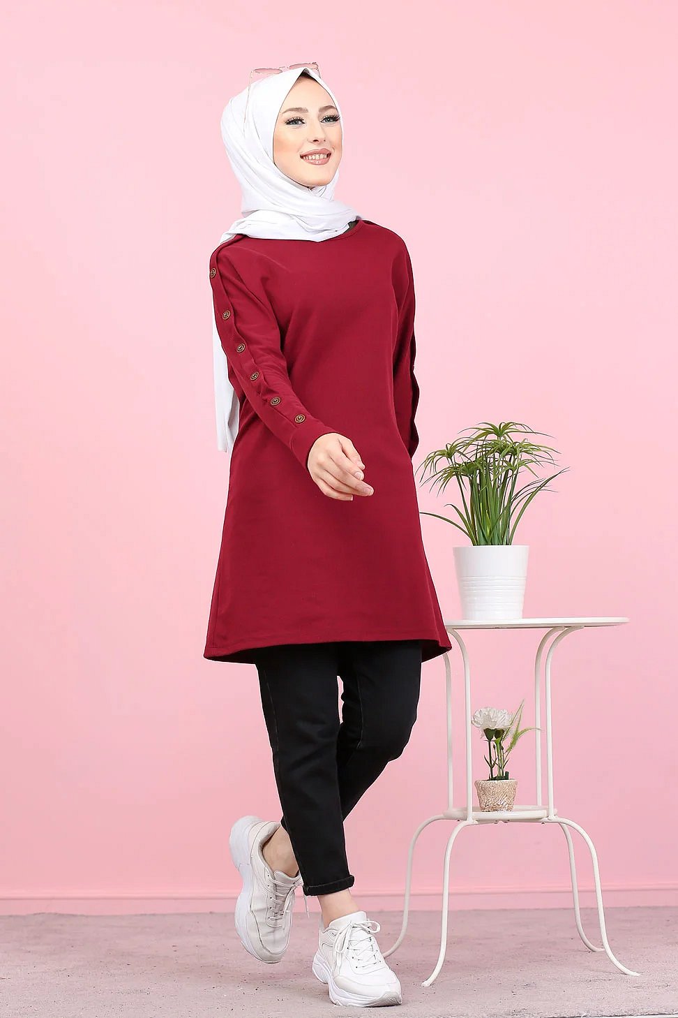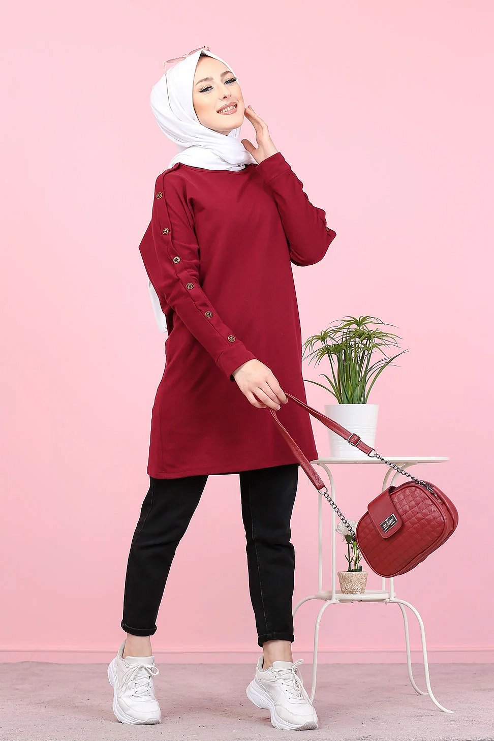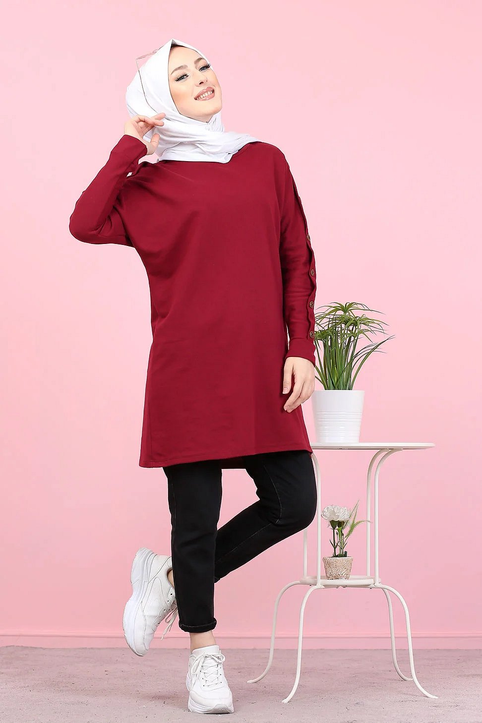 Tunique décontractée Style Sweat-shirt (Mode islamique et Hijab pour femme) - Couleur bordeaux Vetement & Accessoire
