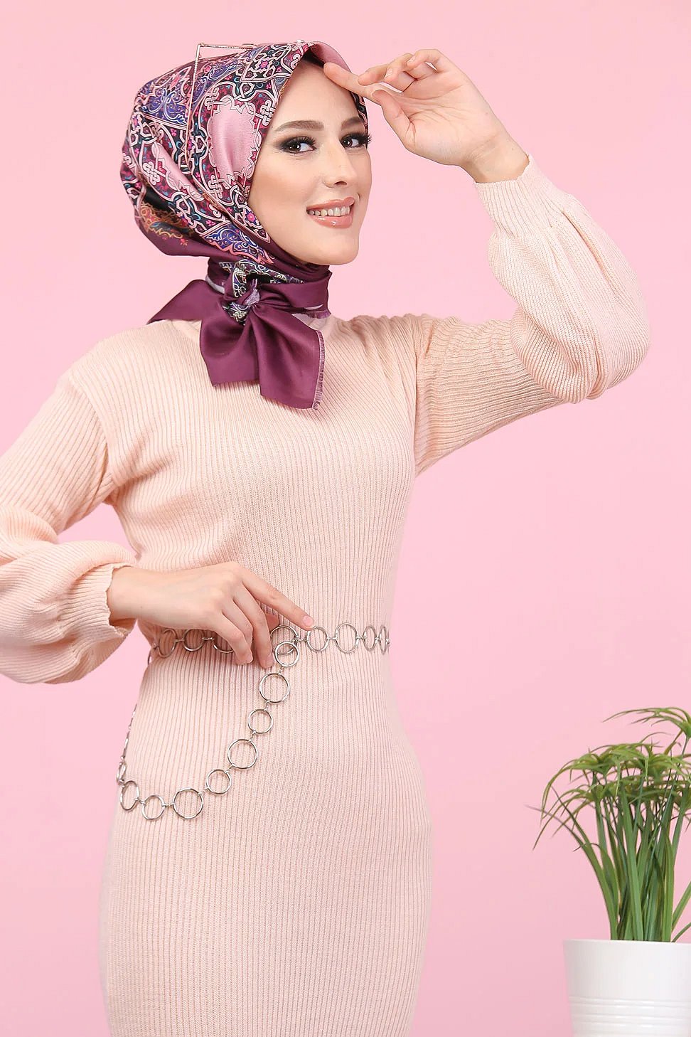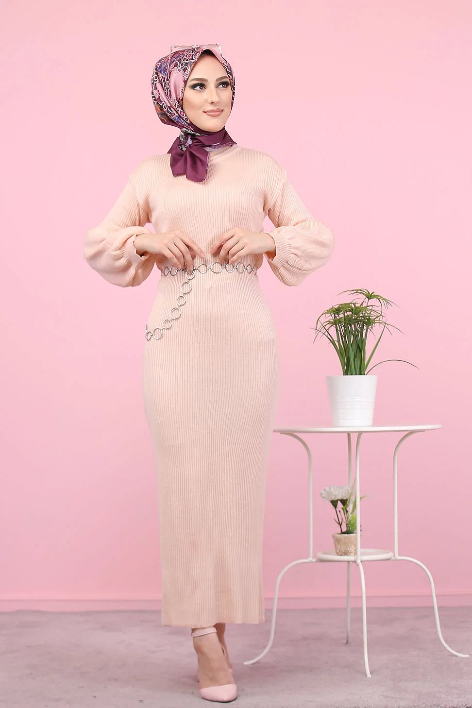 Robe longue tricotée pour femme (Mode Musulmane - Automne Hiver) - Couleur rose poudré Vetement & Accessoire