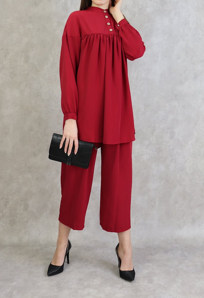 Ensemble casual chic pour femme - Deux pièces (tunique et pantalon) - Couleur Framboise Vetement & Accessoire