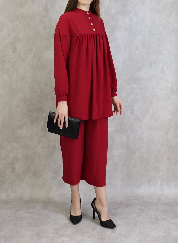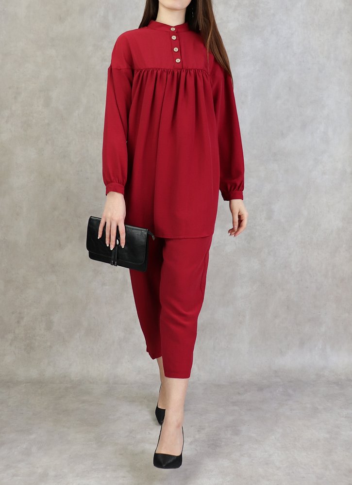 Ensemble casual chic pour femme - Deux pieces (tunique et pantalon) - Couleur Framboise
