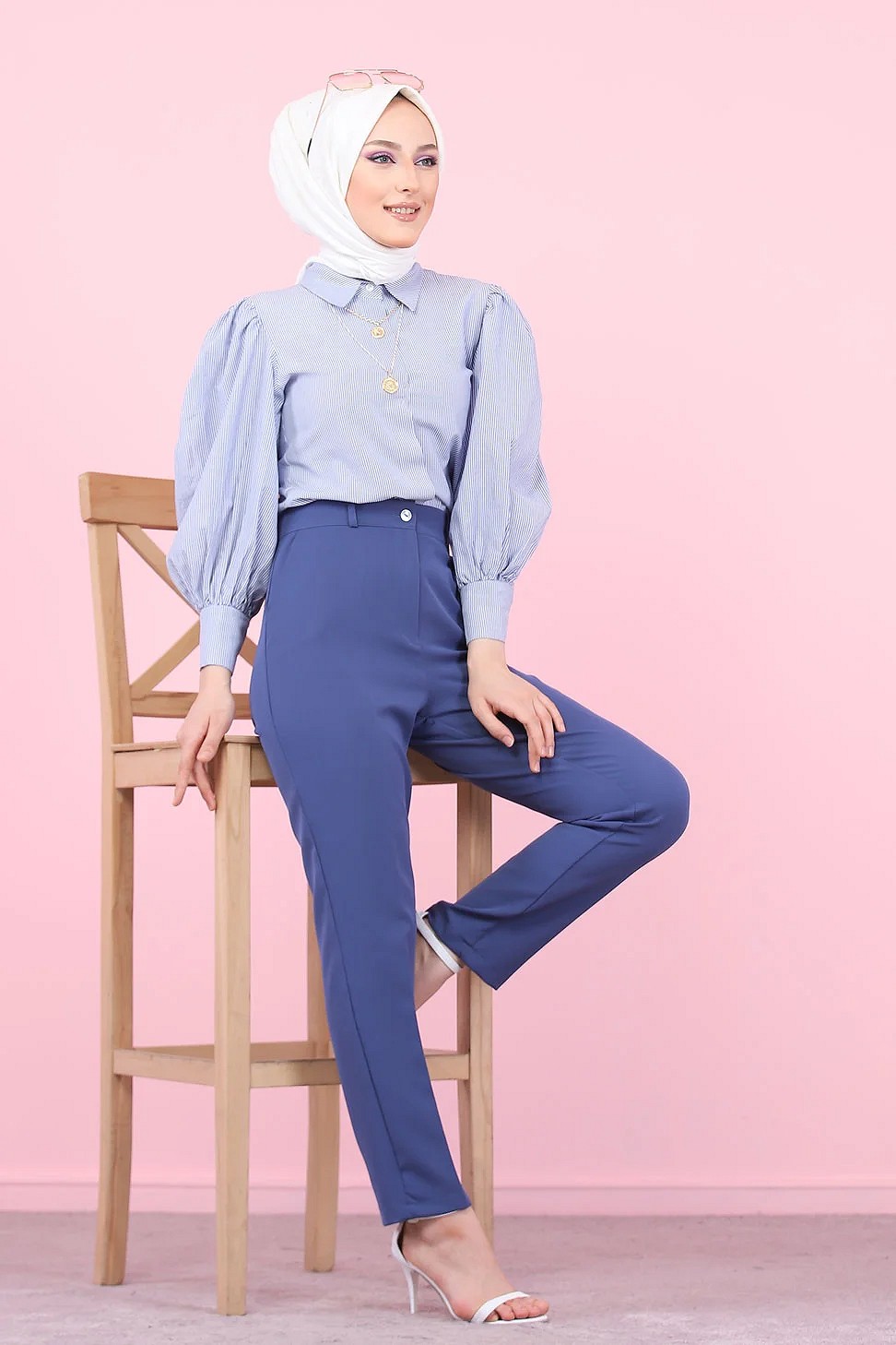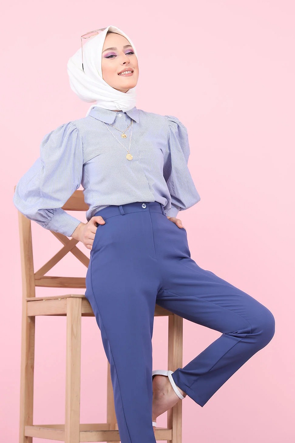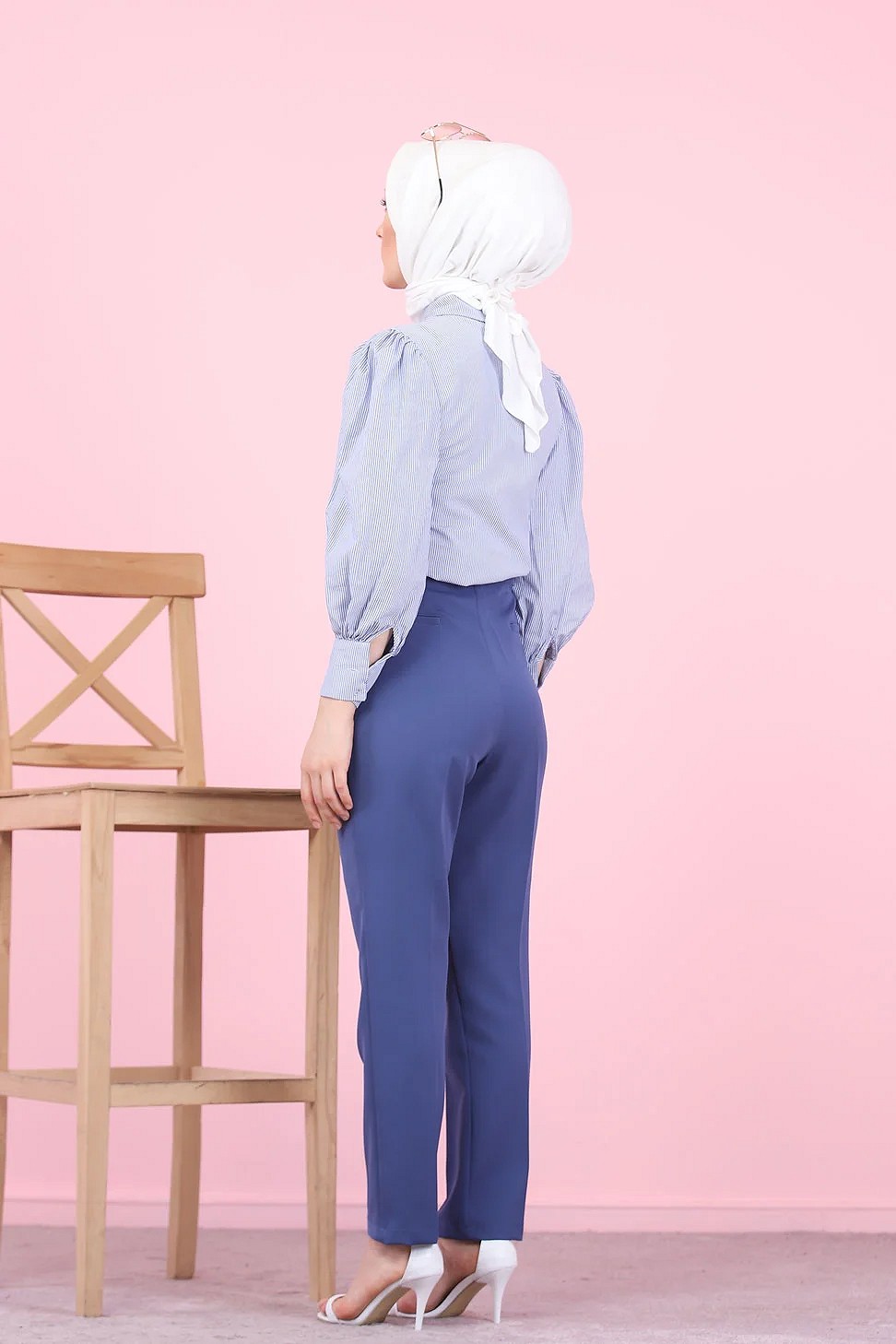 Pantalon cigarette pour femme (Vetement Hijab - Grande taille disponible) - Couleur bleu Vetement & Accessoire