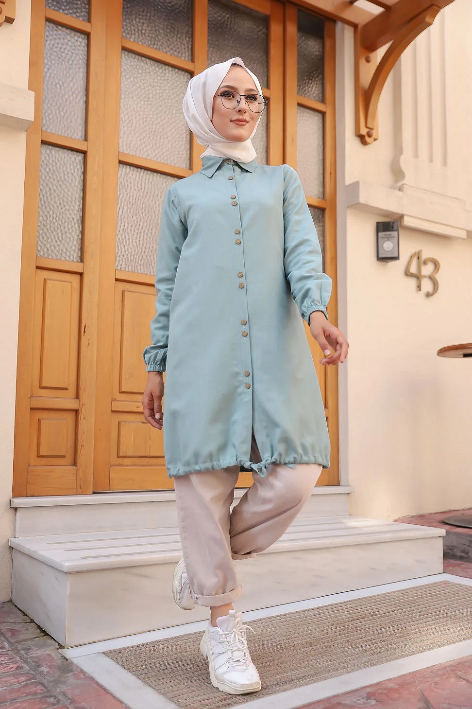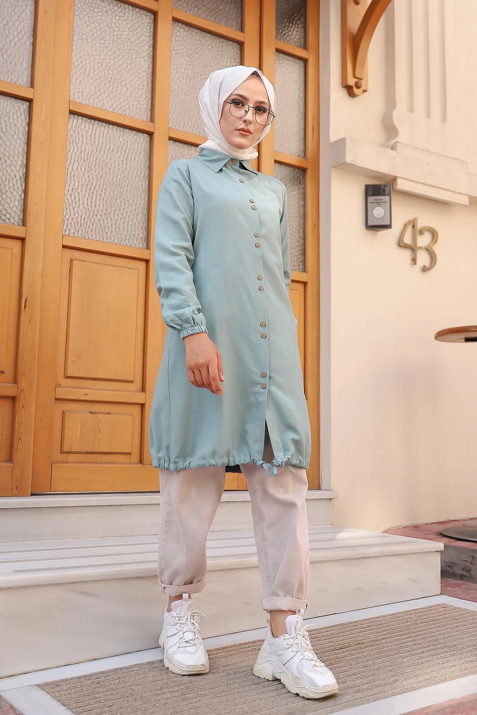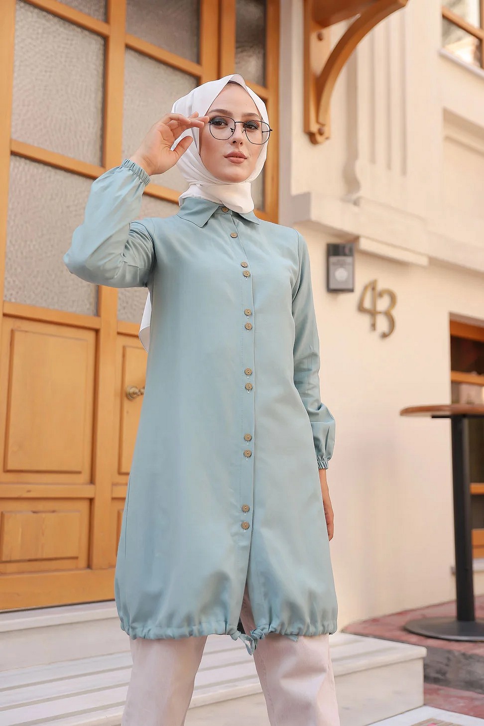 Tunique-Chemise ample boutonnee (Vetement decontracte femme voilee) - Couleur menthe