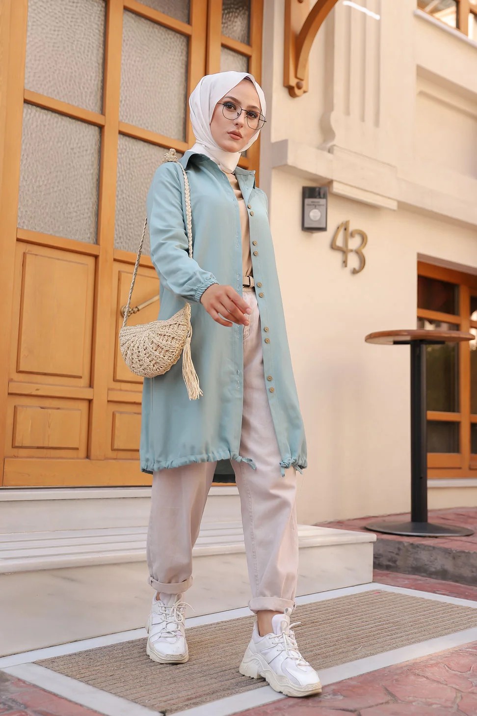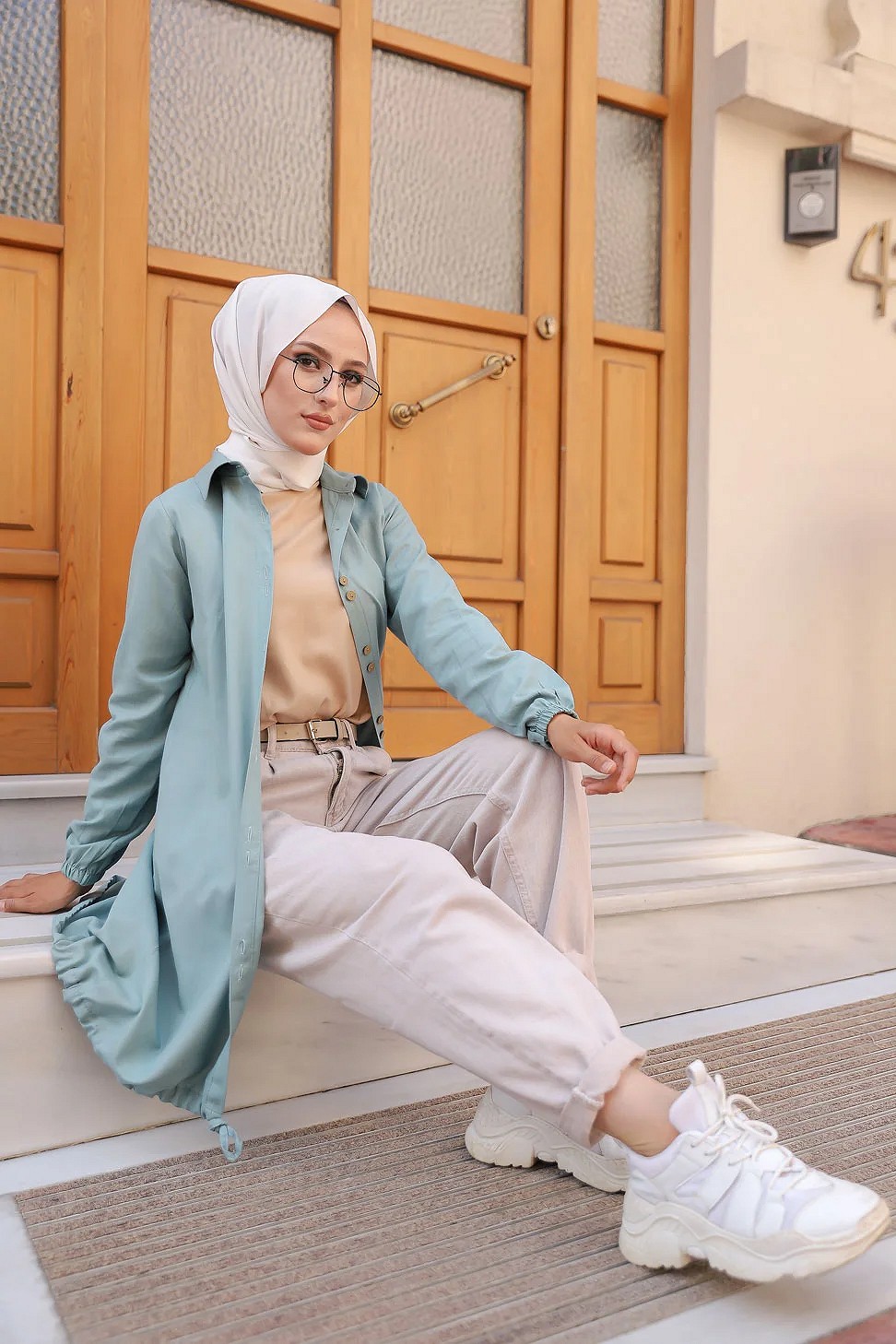 Tunique-Chemise ample boutonnée (Vetement décontracté femme voilée) - Couleur menthe Vetement & Accessoire