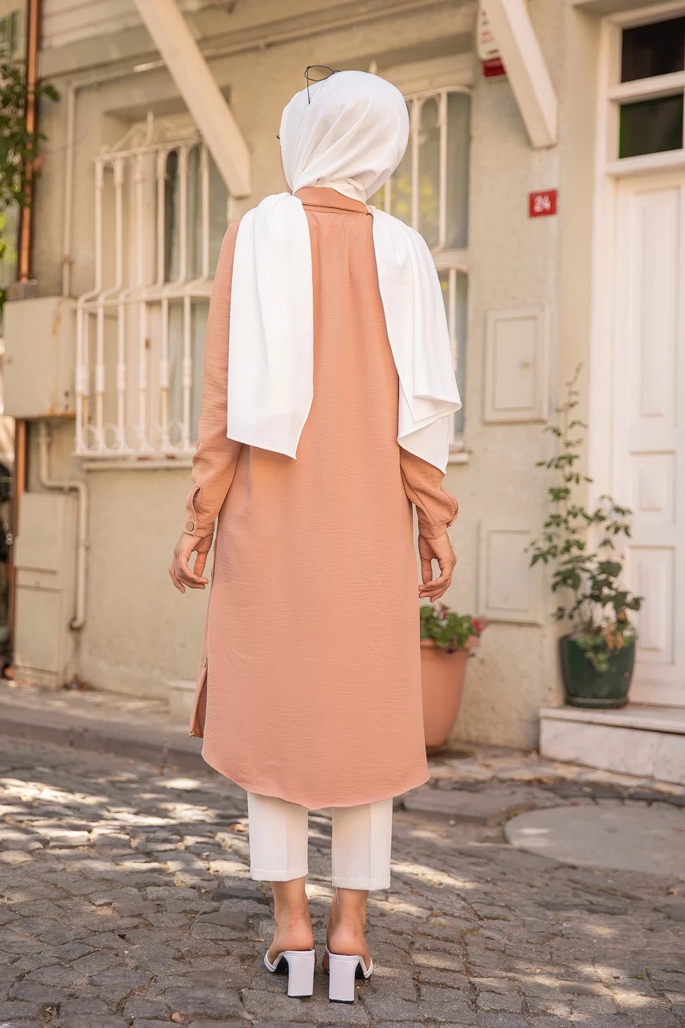 Chemise longue boutonnee type tunique (Vetements pour Hijab France en ligne) - Couleur vison