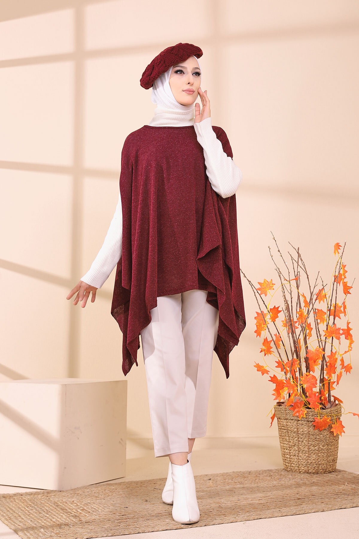 Poncho pour femme (Cape pour toutes les saisons) - Couleur bordeaux Vetement & Accessoire