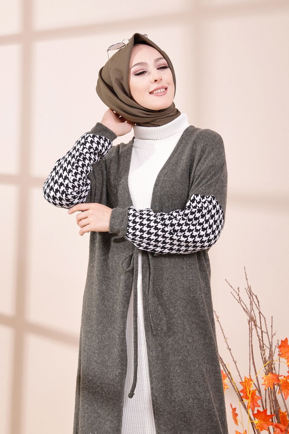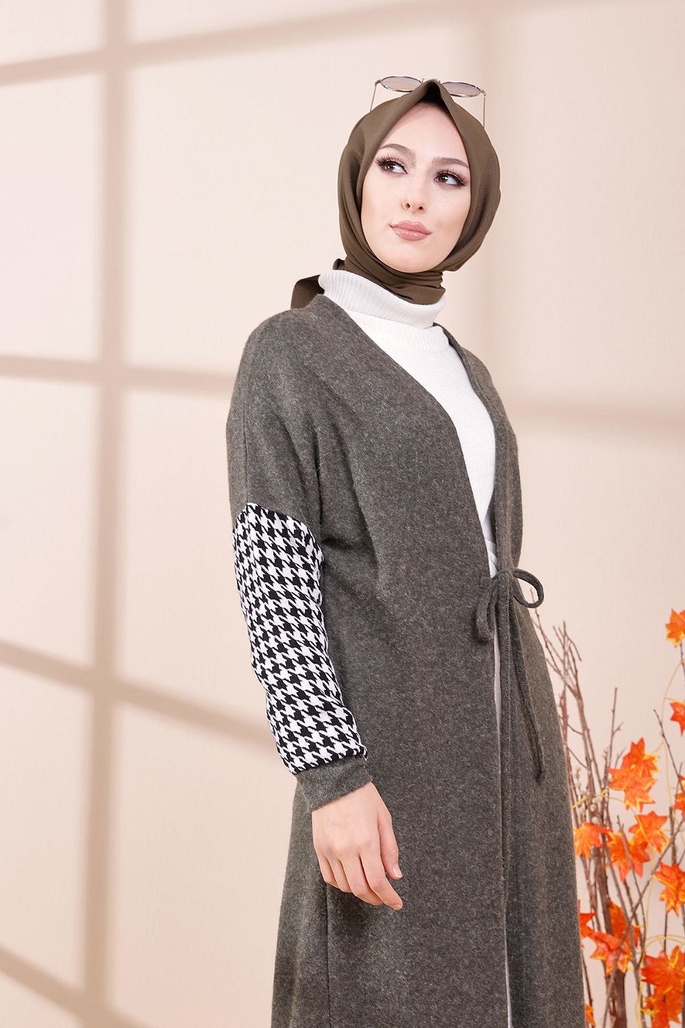 Cardigan long pour femme (Vetement hiver hijab) - Couleur kaki Vetement & Accessoire