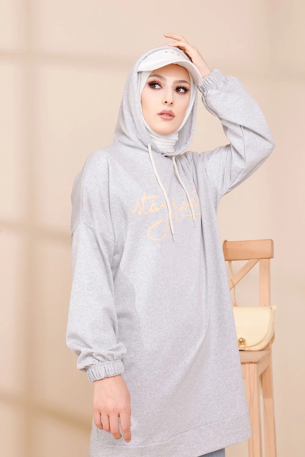 Tunique ample style décontracté et sport (Sweat Hijab moderne) - Couleur gris foncé - REF. 35506 (25.00 €) - En Promotion à 19.90 €