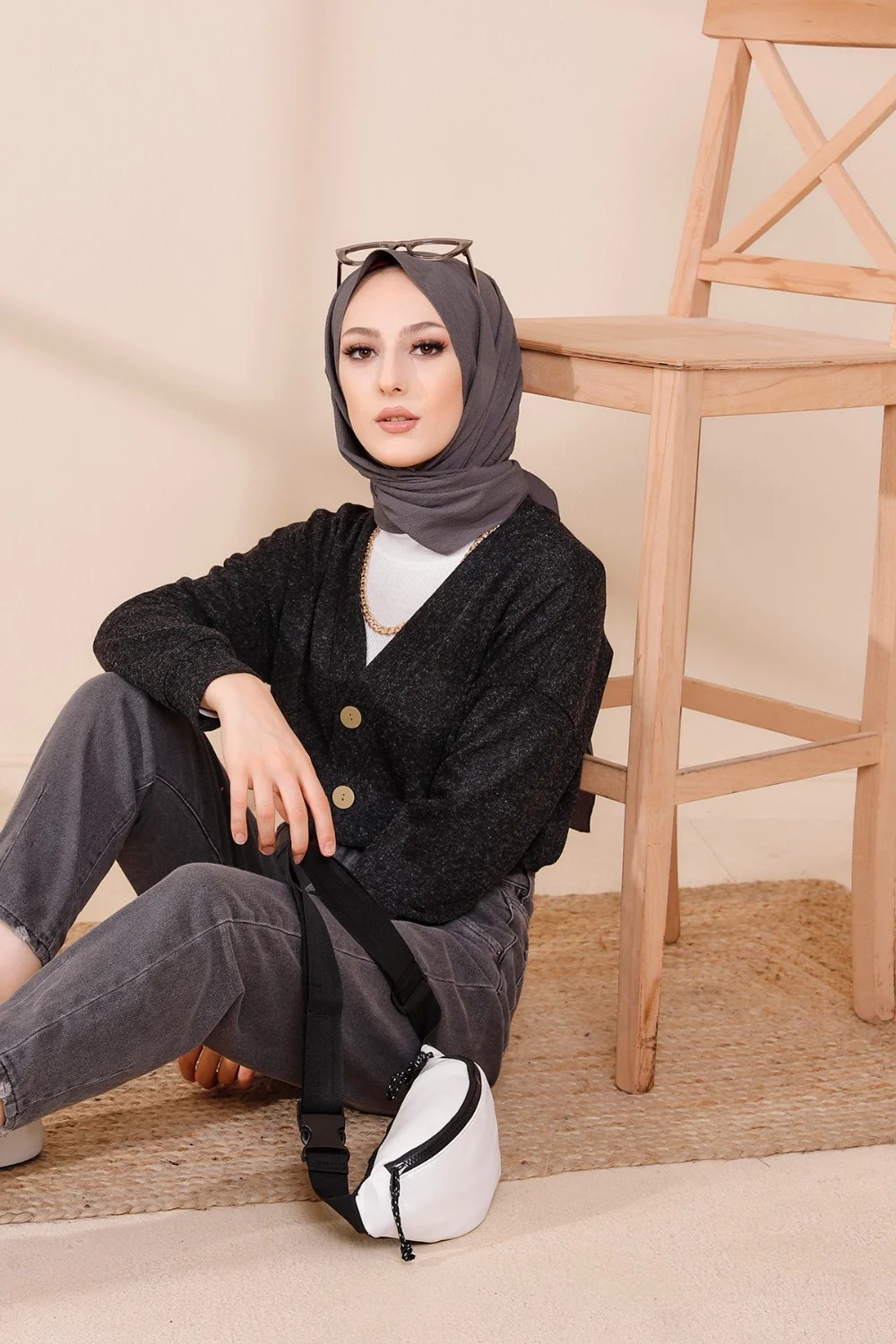 Tunique-pull pour femme (Vêtement Hijab chaud - Saisons Automne Hiver) - Couleur noir - REF. 35538 (24.90 €)