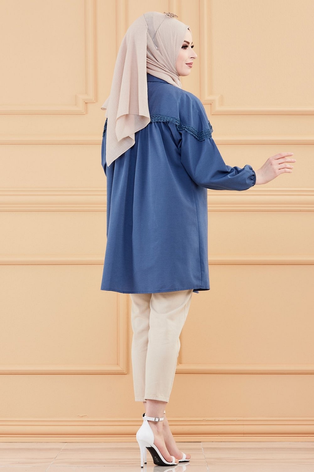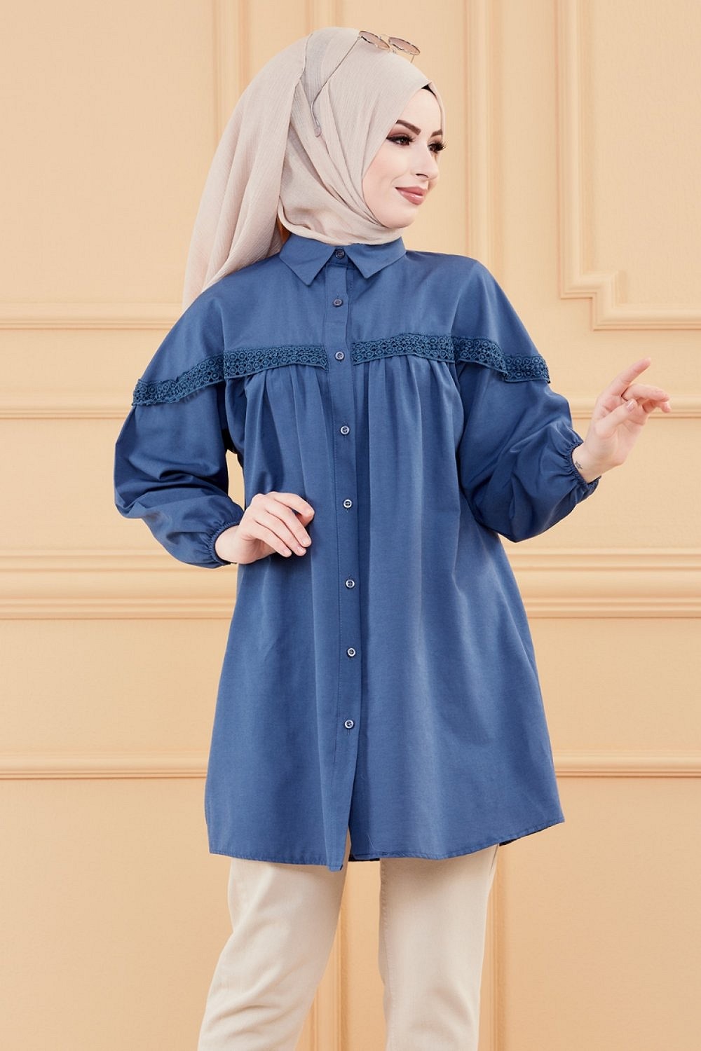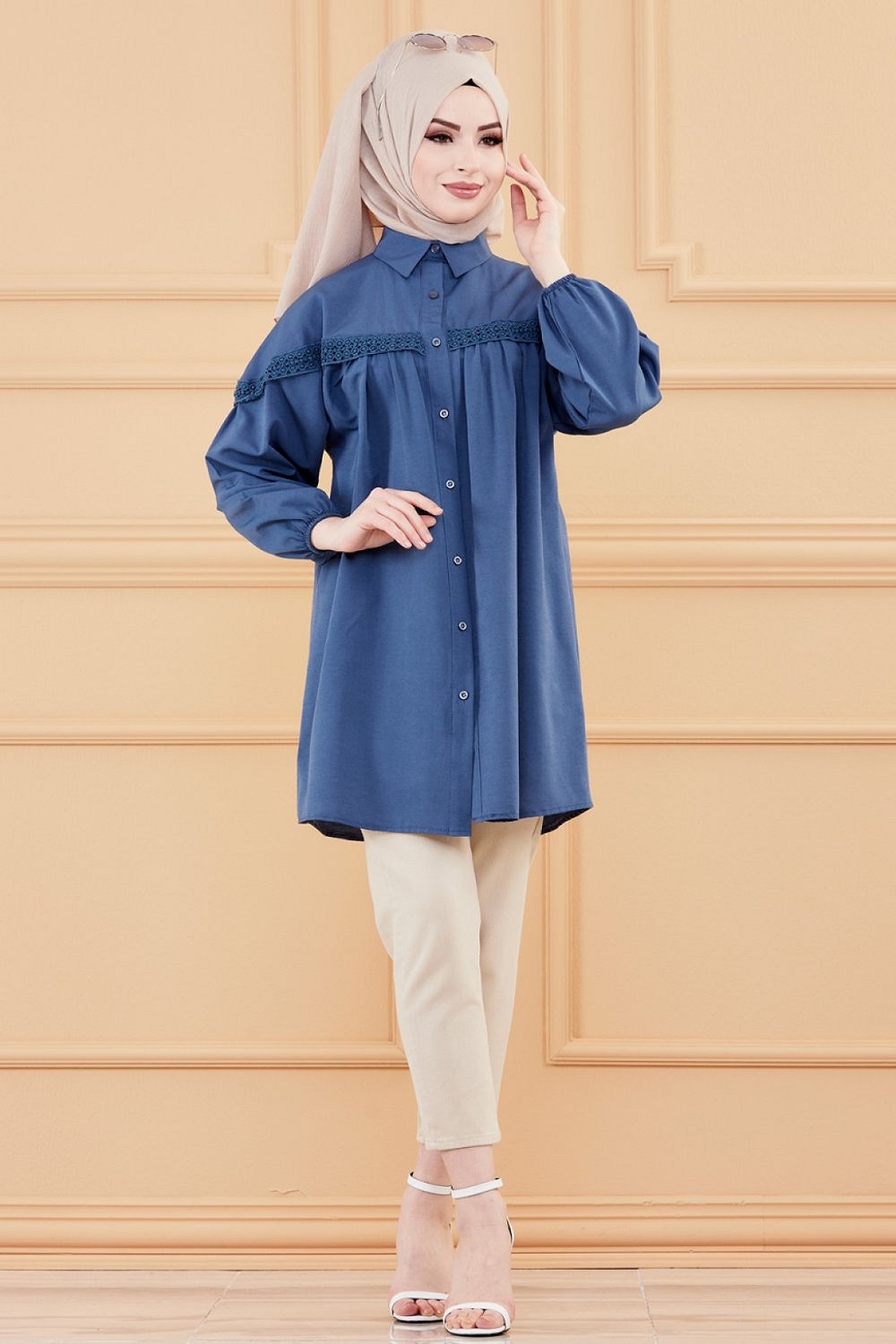 Tunique-Chemise ample avec dentelle pour femme (Vetement Hijab classique) - Couleur bleu Vetement & Accessoire