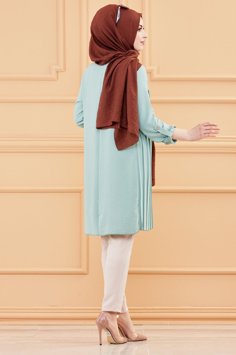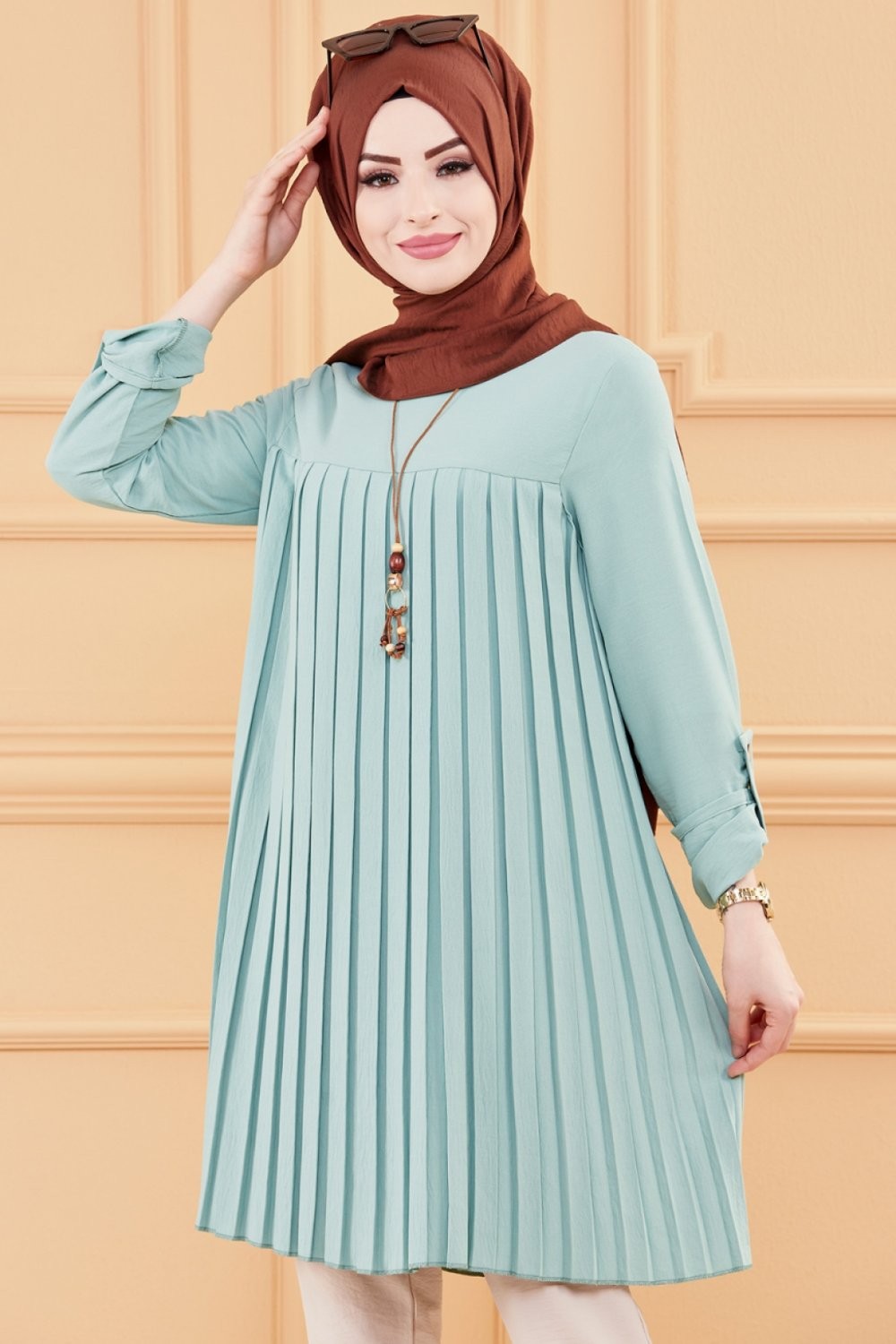 Tunique plissee style habille pour femme (Tenue elegante pour hijab) - Couleur menthe