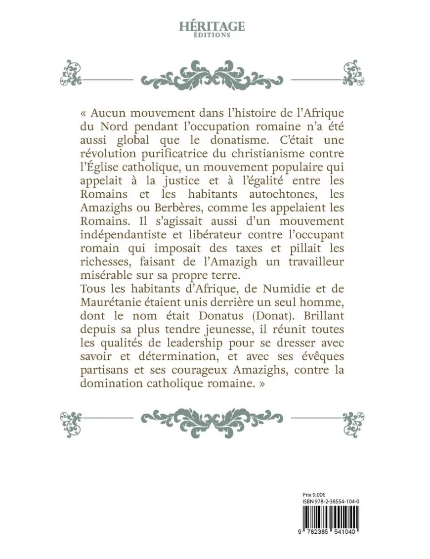 Tous les habitants d’Afrique, de Numidie et de Maurétanie étaient unis derrière un seul homme, dont le nom était Donatus (Donat). Brillant depuis sa plus tendre jeunesse, il réunit toutes les qualités de leadership pour se dresser avec savoir et détermination, et avec ses évêques partisans et ses courageux Amazighs, contre la domination catholique romaine. »