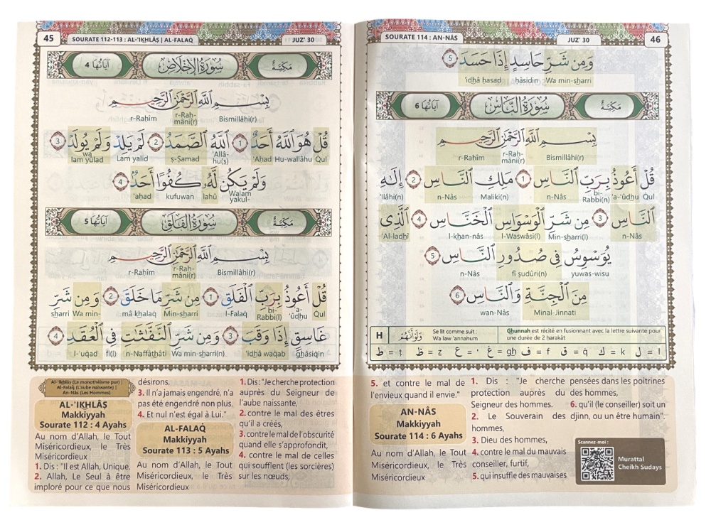 Découvrez nos nouveaux Coran Chapitre Amma (Jouz' 'Ammâ جزء عم) exceptionnels adaptés aux personnes non arabophones (ou débutants en arabe) désirant apprendre la lecture et la prononciation correcte du Saint Coran de façon simple et intuitive.