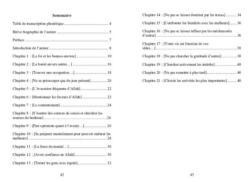 Que vous soyez en quête d’apaisement ou désireux de renforcer votre foi, ce livre vous accompagnera sur la voie de l'épanouissement. Car, en définitive, c'est Allah Seul qui accorde la réussite à ceux qui recherchent le bien et s'efforcent de fuir ce qui nuit à l'âme.
