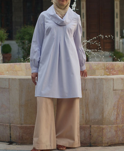Tunique sophistiquée et élégante avec col évasé. 100 % coton. Lavage machine.
