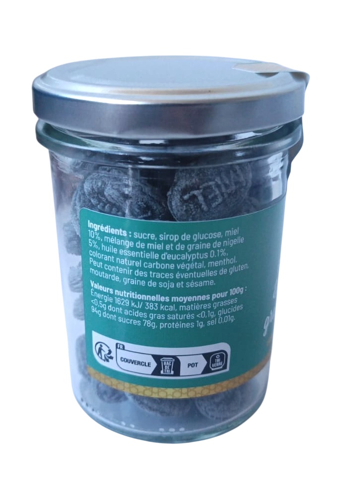 Bonbons Miel eucalyptus et graine de Nigelle (Habba Sawda) - Pot en verre de 150 gr - REF. 8911 (6.50 €)