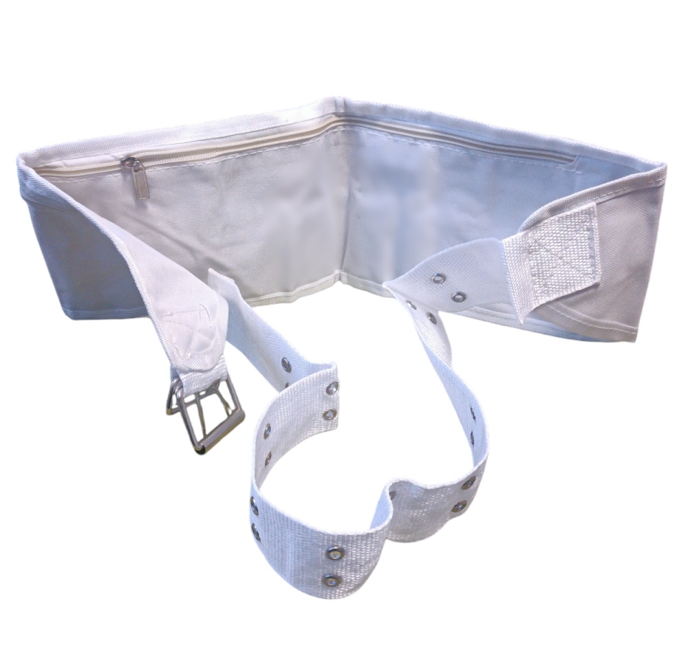 Ceinture pour le Hadj et la 'Oumra avec poches intégrées, de couleur blanche assortie au Ihrâm. Trois grandes poches (1 poche à scratch et 2 poches zip) idéals pour ranger ses papiers, son argent, livre de poche, etc.