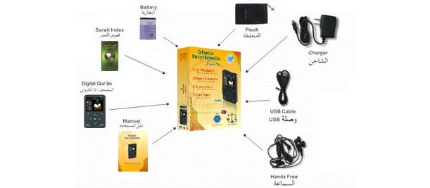 - Tafsir, Hadith, Histoire et d'autres livres islamiques: * Tafsir Ibne Katheer (Arabe) * Tafsir Ibne Katheer (Anglais) * Tafsir Ibne Katheer (ourdouUrdu) * Tafsir Al-Jalalain (Arabe) * Tafsir Al-Jalalain (Mly-Indo) * Tafsir Al-Qurtabi (Arabe) * Tafsir Al-Tabari (Arabe) * Sahih Al-Bukhari (Arabe) * Sahih Al-Bukhari (Anglais) * Sahih Al-Bukhari (Mly-Indo) * Sahih Al-Bukhari (ourdou) * Sahih Muslim (Arabe) * Sahih Muslim (ourdou) * Riad-as-Salhin (Arabe) * Riad-as-Salhin (Anglais) * Riad-as-Salhin (Français) * Sunnen Ibne Majja (Arabe) * Sunnen Nissaie (Arabe) * Sunnen Abu Dowood (Arabe) * Sunnen Tirmizi (Arabe) * Arbaeen Nawawi (Arabe) * Arbaeen Nawawi (Anglais) * Hadith Qudsi (Arabe) * Qasas-ul-Anbia (Arabe) * Al-Kabaer (Arabe) * Al-Rahiq Al-Makhtum (Arabe) * Belugh elmaram (Arabe) * Hisn-al-Muslim (Arabe) * Hisn-al-Muslim (Anglais) * Ahakm Al-Tajweed Autres fonctions : Traduction du Saint Coran en 28 langues : Albanais, azéri, bengali, bosniaque, néerlandais, anglais, finlandais, français, allemand,haoussa, indonesien, italien, latin, malayalam, malais, persan, polonais, portugais, russe, somali, espagnol, swahili, suédois, tamoul, thaï, translittération, turc, ourdou. - 38 styles de police