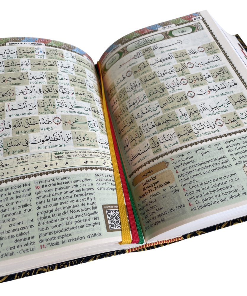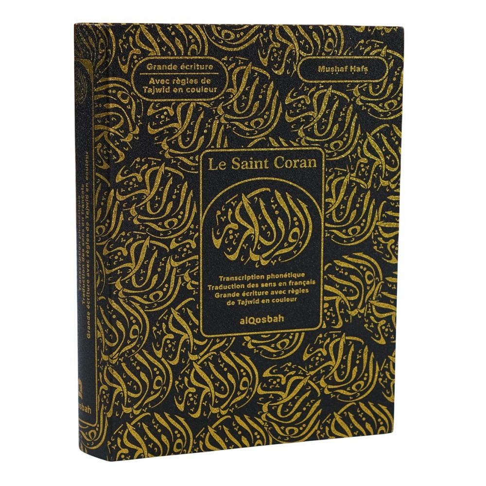 Le Saint Coran - Transcription phonétique - Traduction des sens en français - Codes QR - Règles de Tajwîd en couleur - Noir doré (16 x 21,5 cm) - REF. 40924 (29.00 €)