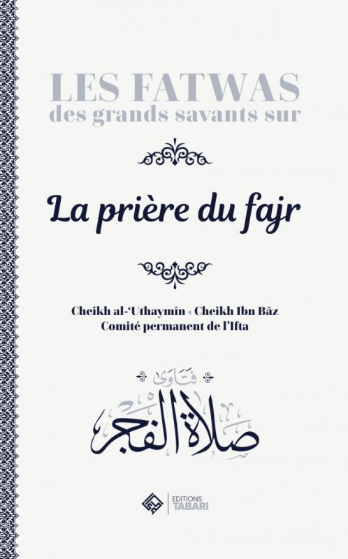 Le livre « Les Fatwas des grands savants sur la prière du Fajr » regroupe les avis et enseignements de sommités islamiques telles que Cheikh Ibn Bâz, Cheikh al-‘Uthaymîn et le Comité permanent de l’Iftâ. Publié par les Éditions Tabari, cet ouvrage éclaire en profondeur le statut, les vertus et les règles de la prière de l’aube (Salât al-Fajr), l’un des actes d’adoration les plus méritoires en islam.
