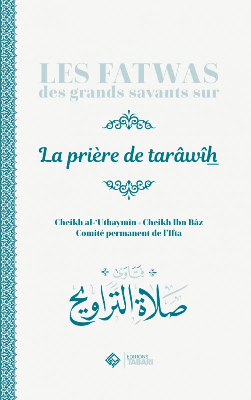 Le livre « Les Fatwas des grands savants sur la prière de Tarâwîh » compile les avis éclairés de grands savants contemporains sur une pratique centrale du mois de Ramadan : la prière nocturne de Tarâwîh. Publié par les Éditions Tabari, cet ouvrage rassemble les explications de Cheikh Ibn Bâz, Cheikh al-‘Uthaymîn et du Comité permanent de l’Iftâ, qui y détaillent les règles, les mérites et les conditions de cette adoration bénie.
