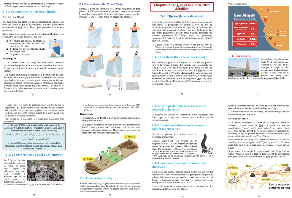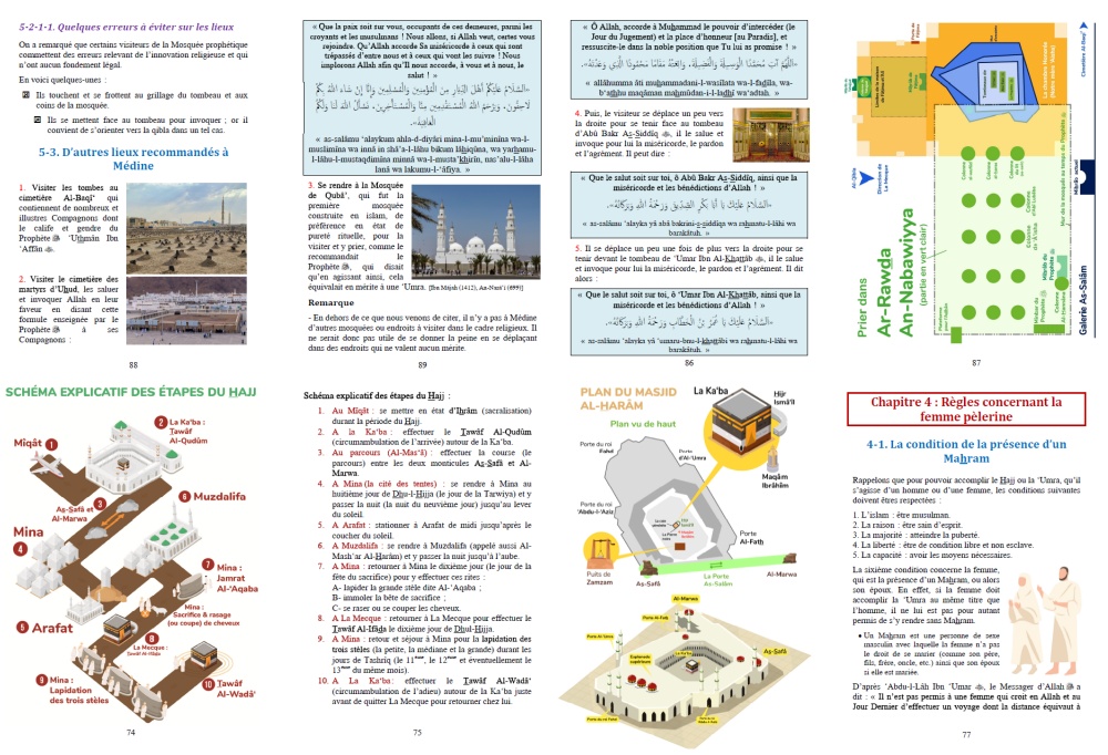 • Un recueil d’invocations en arabe, français et phonétique pour accompagner le pèlerin à chaque étape.