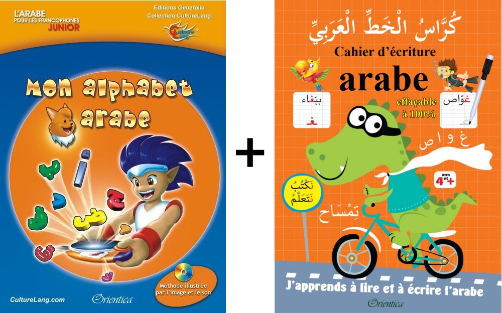 Pack L'arabe pour les francophones "Junior" : Mon alphabet arabe (Livre + Audio Code QR) + Cahier d'écriture de luxe avec feutre effaçable Livre Coup de coeur
