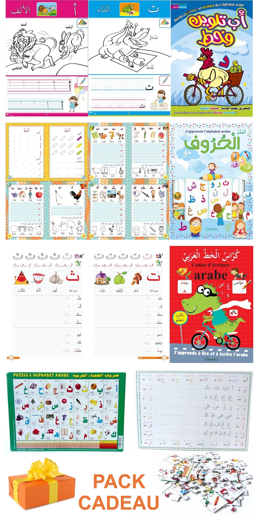 Pack spécial apprentissage de la langue arabe : lecture et écriture. Ce pack très complet est constitué des produits suivants pour les enfants à partir de 4 ans (maternelle et débutants dans l'apprentissage de la langue arabe) :