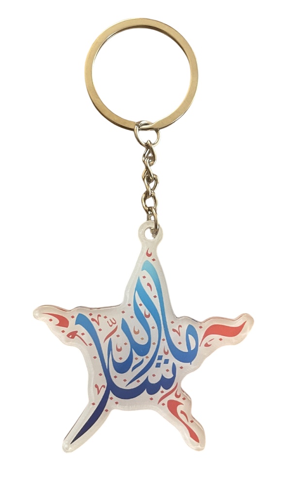 Porte clé avec inscription calligraphique artistique "MachaAllah" - ما شاء الله. Sous forme d'une étoile... Peut également servir de pendentif pour la voiture...