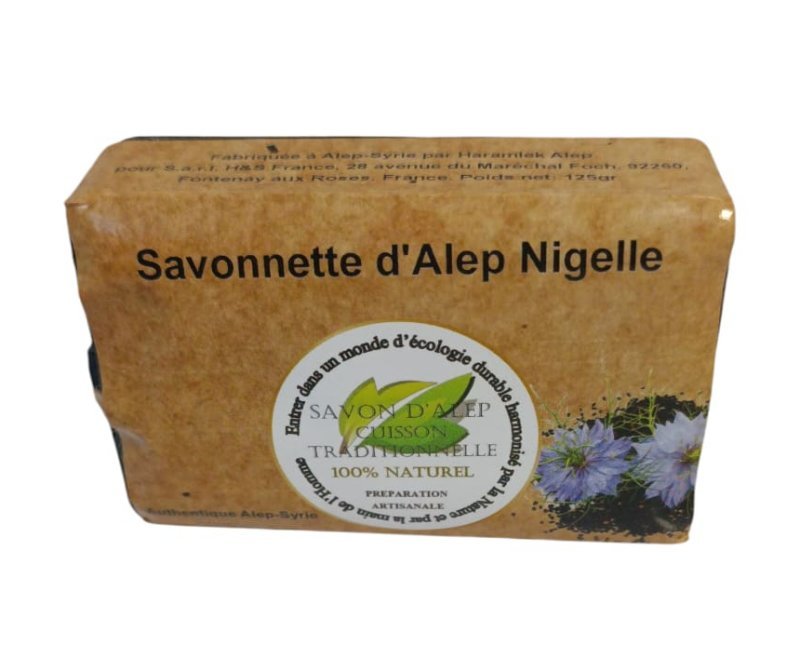 Savon d'Alep artisanal enrichi à l'huile de nigelle et à l'huile d'olive.