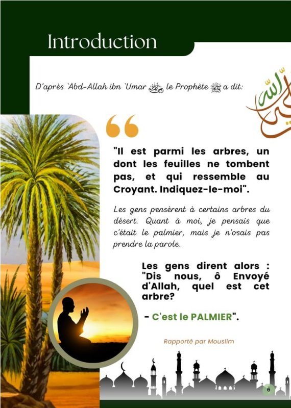 a Que ce livre soit un guide pour nous encourager à adopter les vertus du palmier, à en tirer des enseignements profitables, et à avancer chaque jour sur le chemin de la satisfaction de notre Seigneur, L'Unique, Le Sublime.