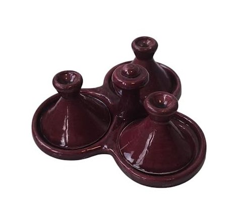 Ces tajines triples sont utilisés comme vaisselle de présentation, comme porte épices, ou simplement pour décorer votre intérieur pour une ambiance relevée en goût... A la marocaine !