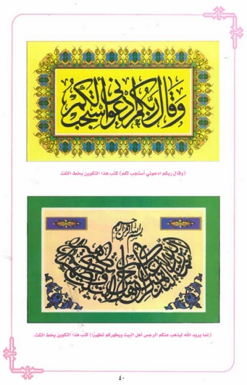 كتاب في الخط العربي يشتمل على قواعد الخط العربي وكيفية تنفيذ الخطوط على الاسطح المختلفة كالجلد والقماش والزجاج مع نماذج رائعة من الخط العربي حلي بها الكتاب